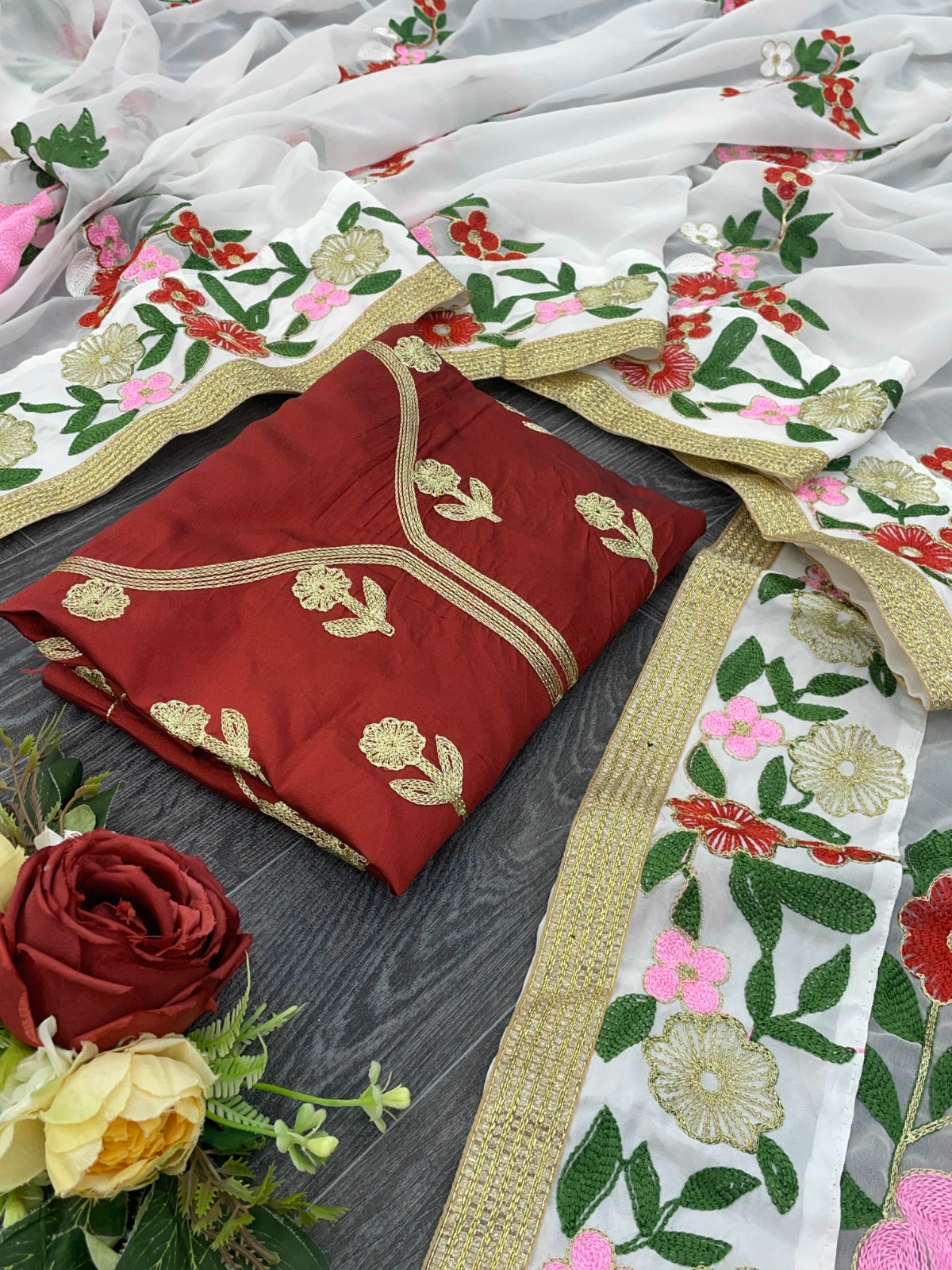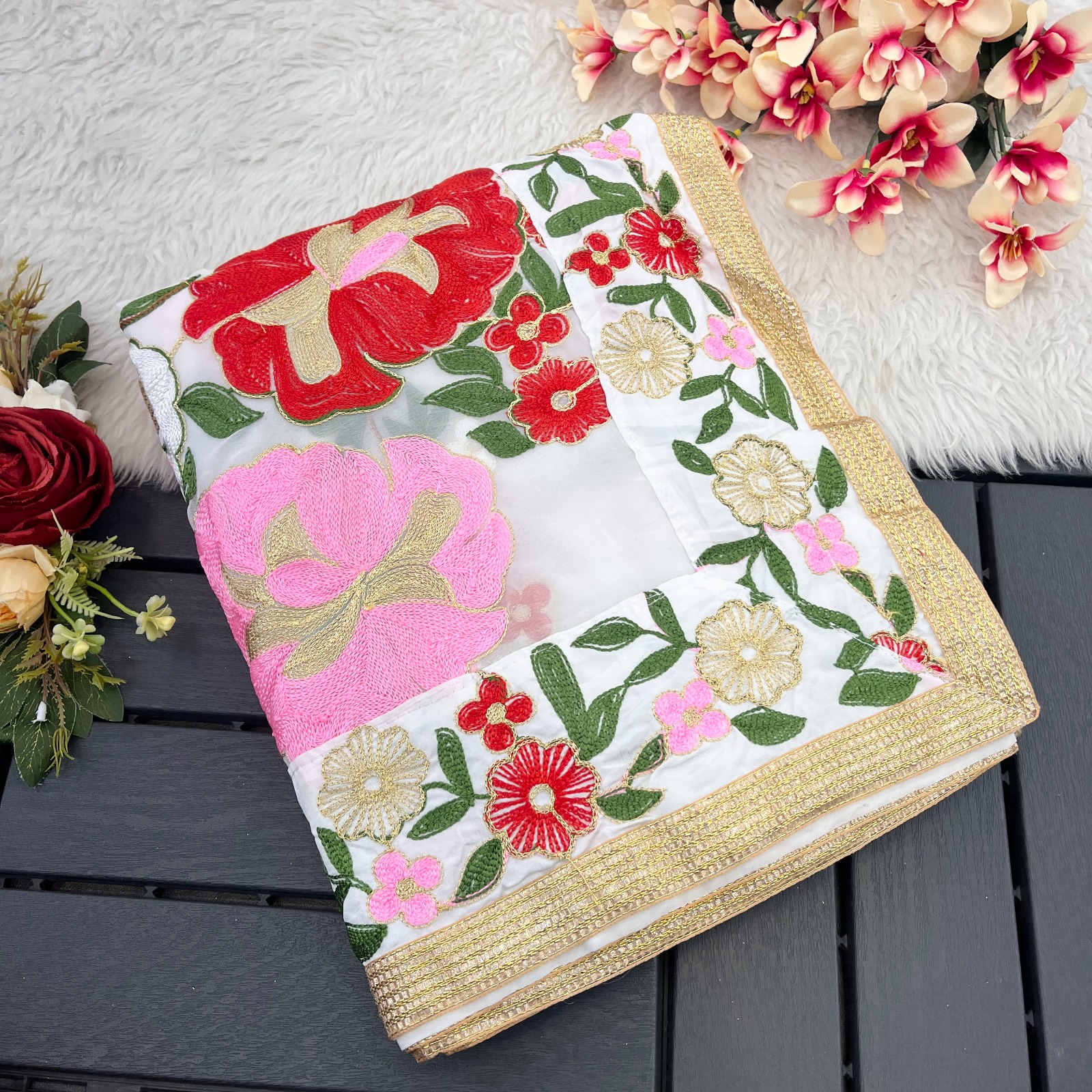 Be the first to review “Elegant Off-White Georgette Saree with Intricate Embroidered Work”