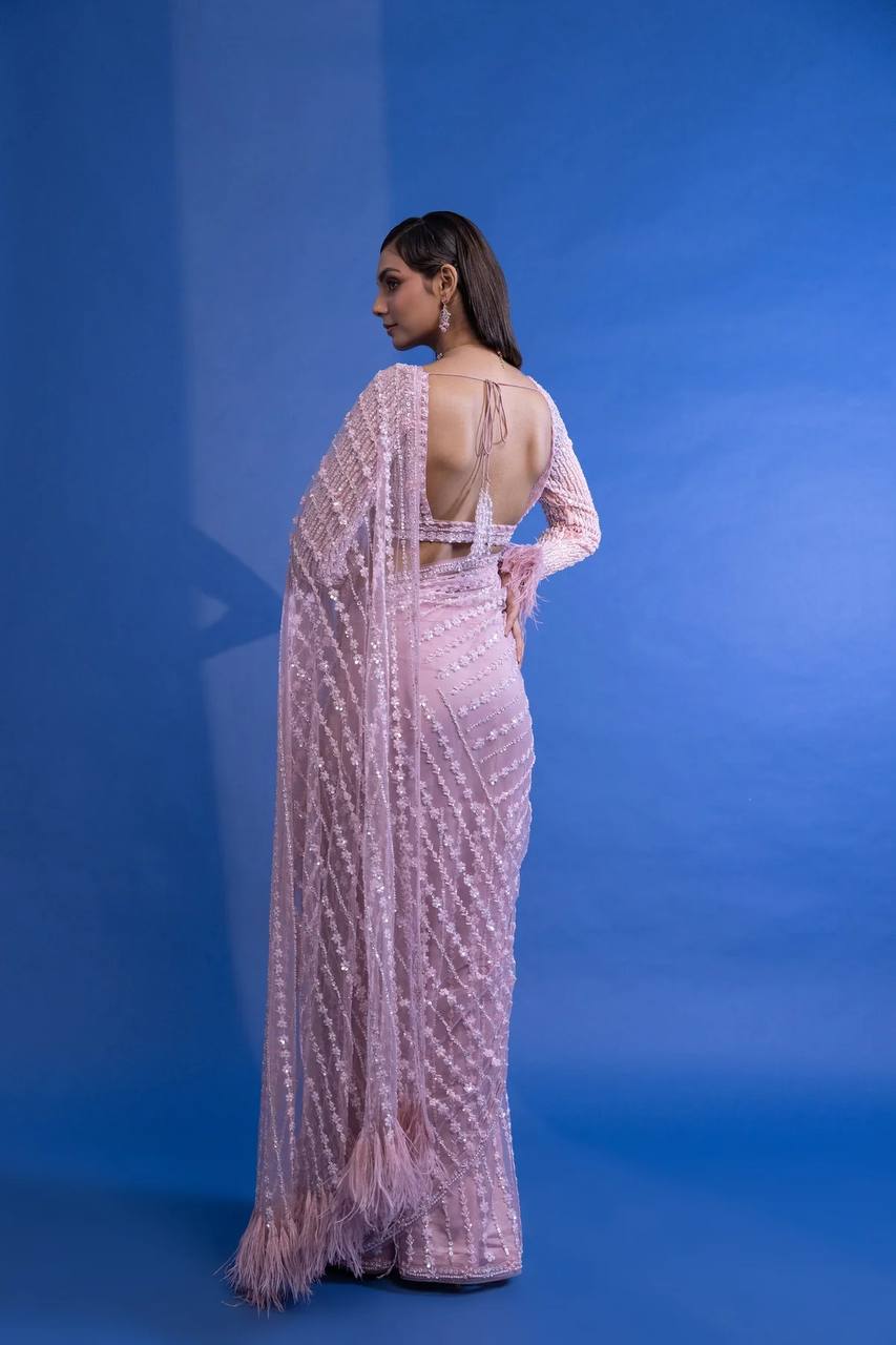 Pink Butterfly Mono Net Saree with Fancy Thread & Sequin Work