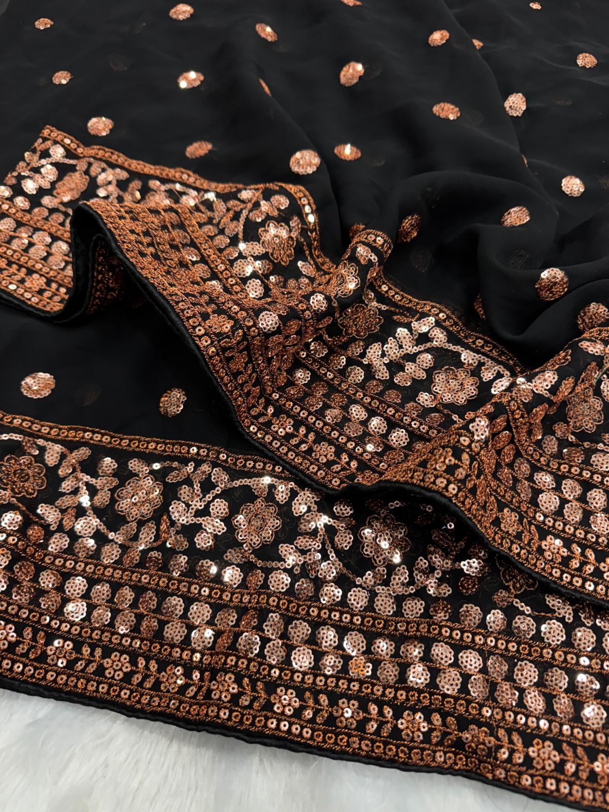 Premium Black Rangoli Silk Partywear Saree with Sequins Border