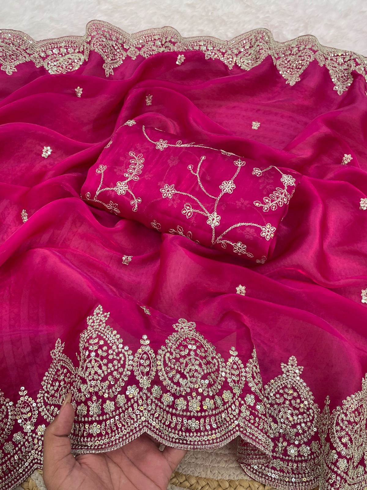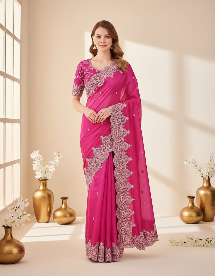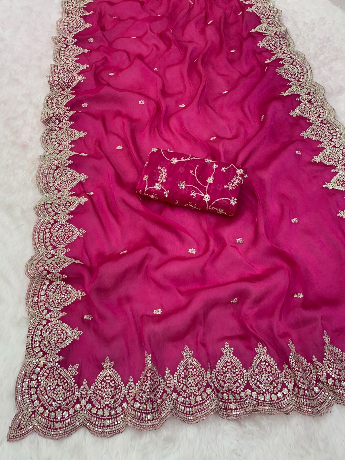 Premium Dark Pink Jimmy Choo Partywear Saree with Fancy Sequin Work