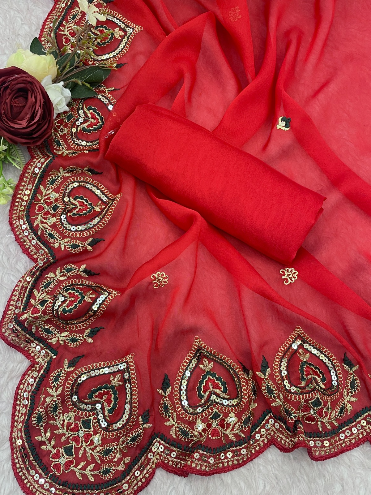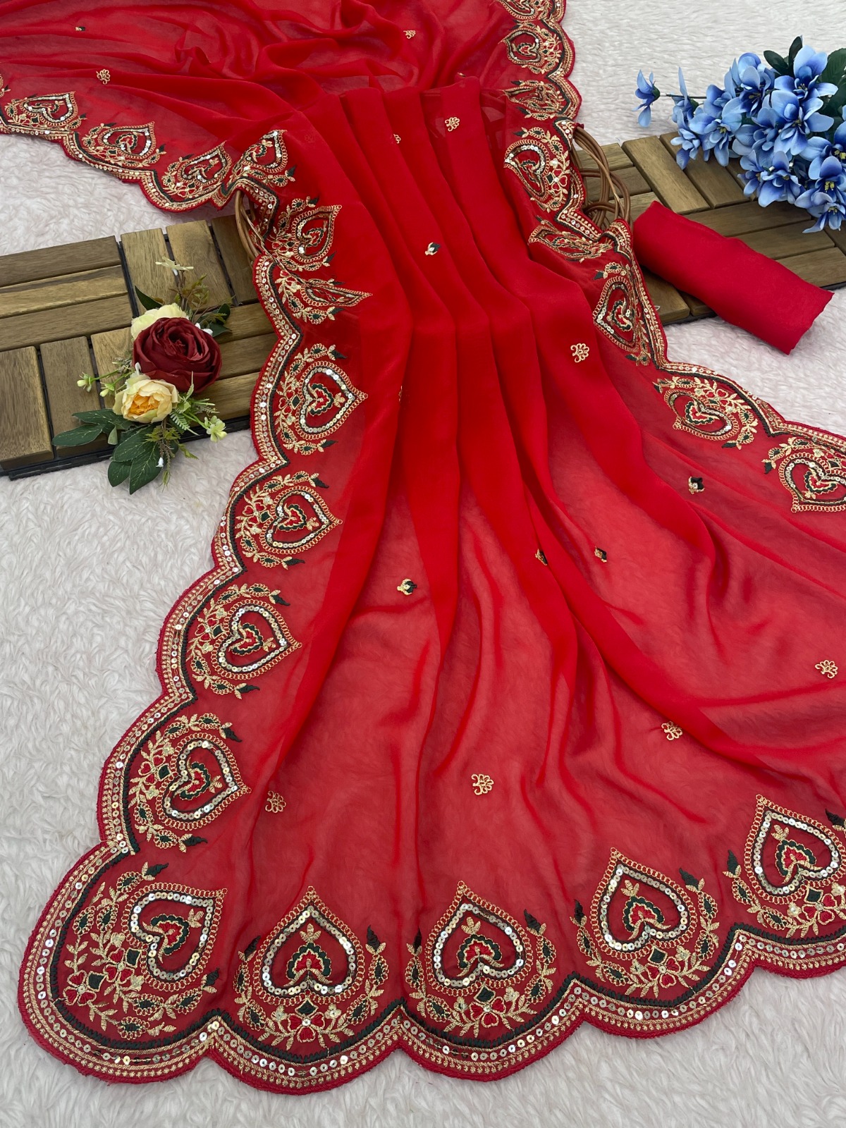 Red Rangoli Silk Partywear Saree Fancy Embroidery Sequins Work Saree